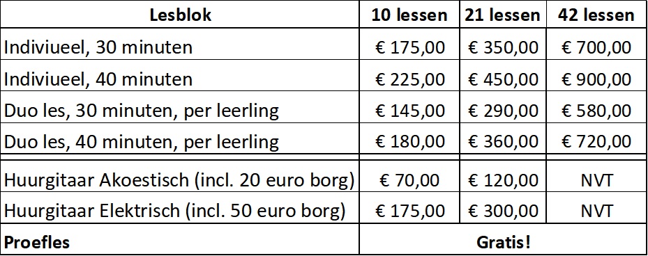 plectrum e.d.) voor de lessen, of maakt hiervoor gebruik van een huurinstrument van Gitaarles Veldhoven (zie ook de voorwaarden voor een huurinstrument onder punt 4).